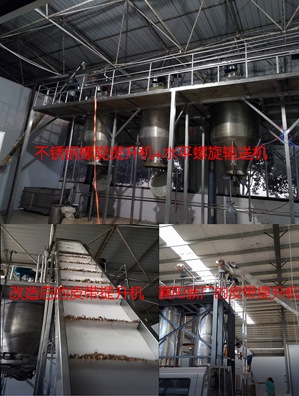 這個有很多了,皮帶提升機、連續(xù)斗式提升機、Z型提升機等等都可以,上面案例中說說的客戶最后選擇的就是用皮帶提升機取代螺旋提升機,成本低、效率高。另外他們在襄陽新建分廠的反應釜集中加料系統還是選的我們做,依然是斜式皮帶提升機+水平螺旋輸送機的經典組合。